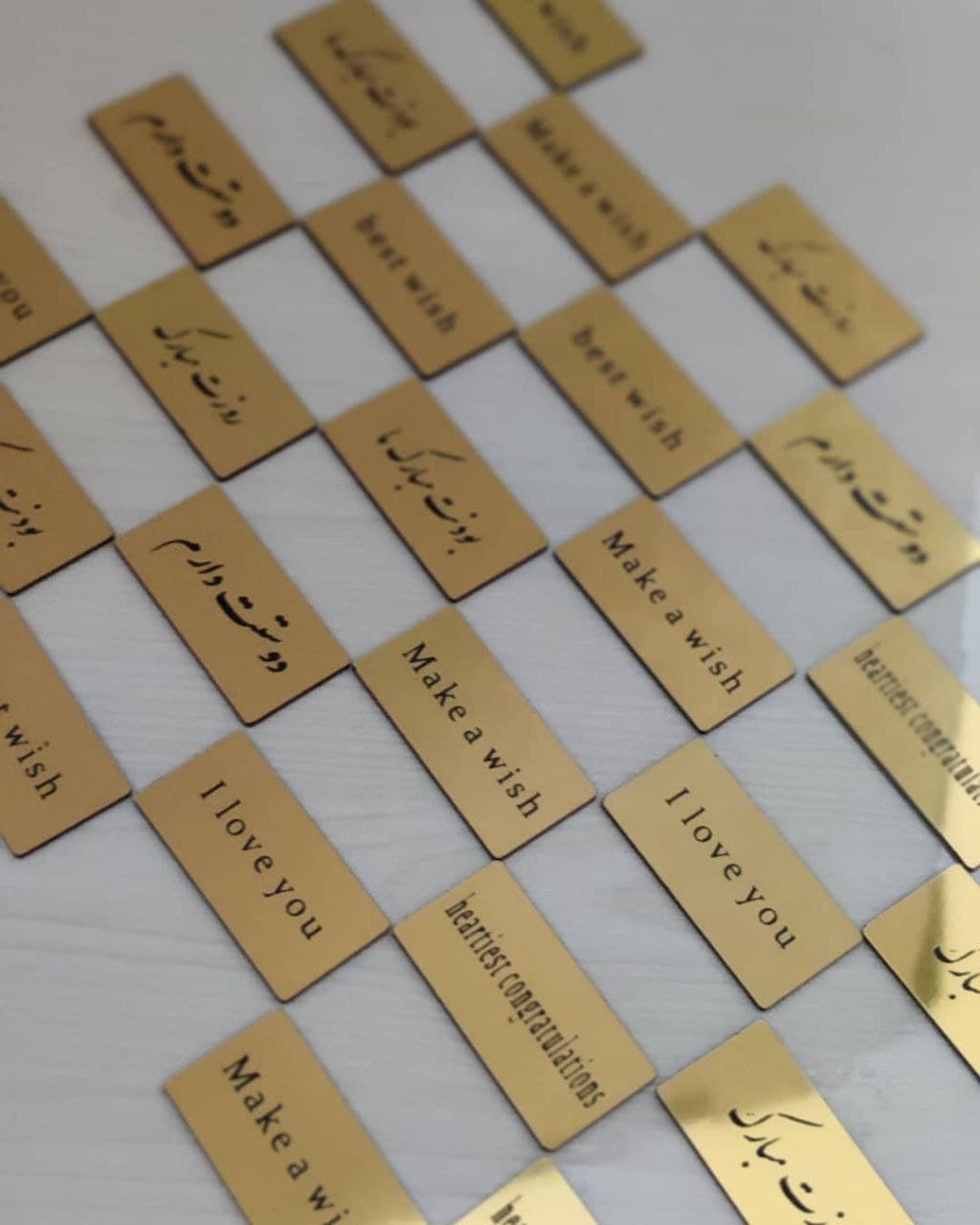 توجه داشته باشید که حکاکی حرف، تاریخ، شکل، جمله و هر طرح دیگری که مد نظر شماست روی سطح کارها امکان پذیر می باشد.